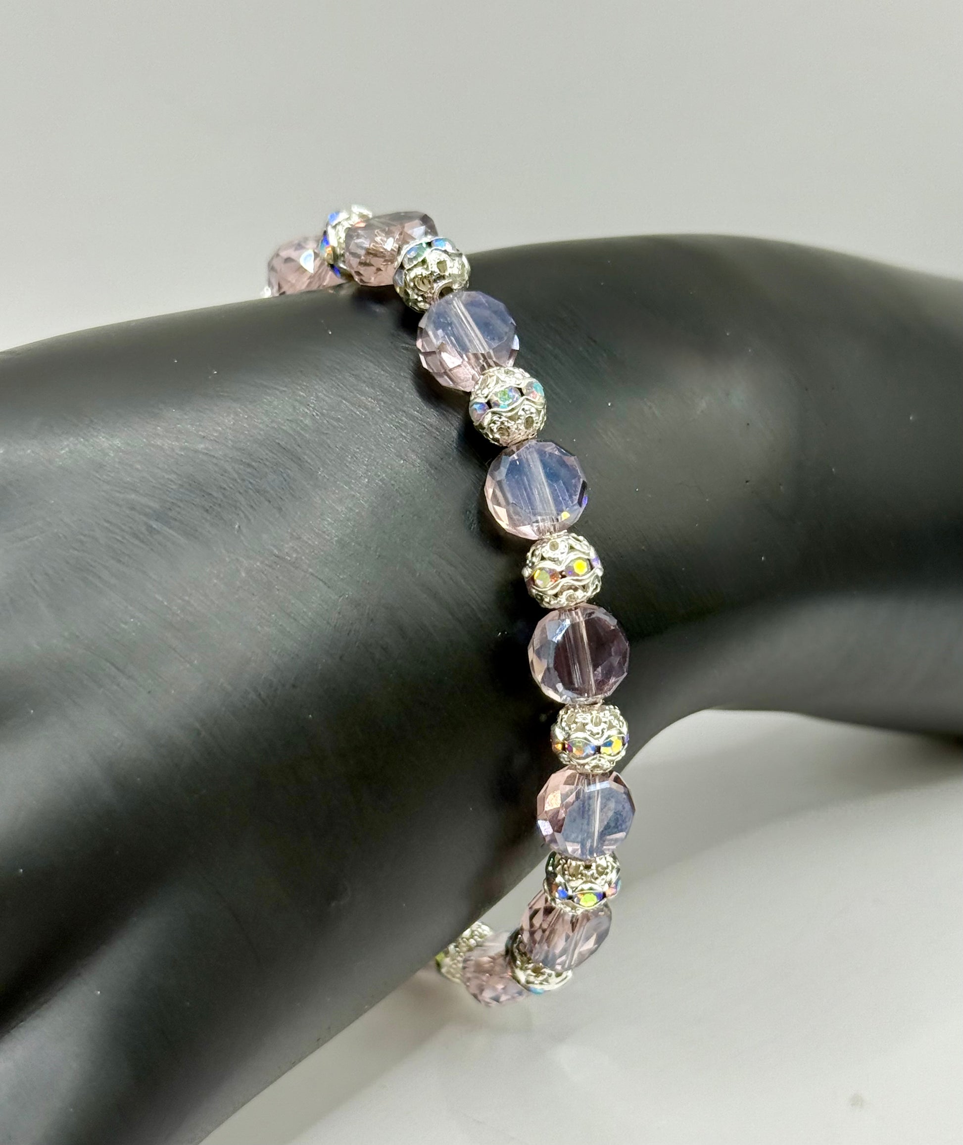 Violet Electroplated Glass Bracelet – 7.5” Clasp, Faceted Coin Beads, Handmade Jewelry Gift